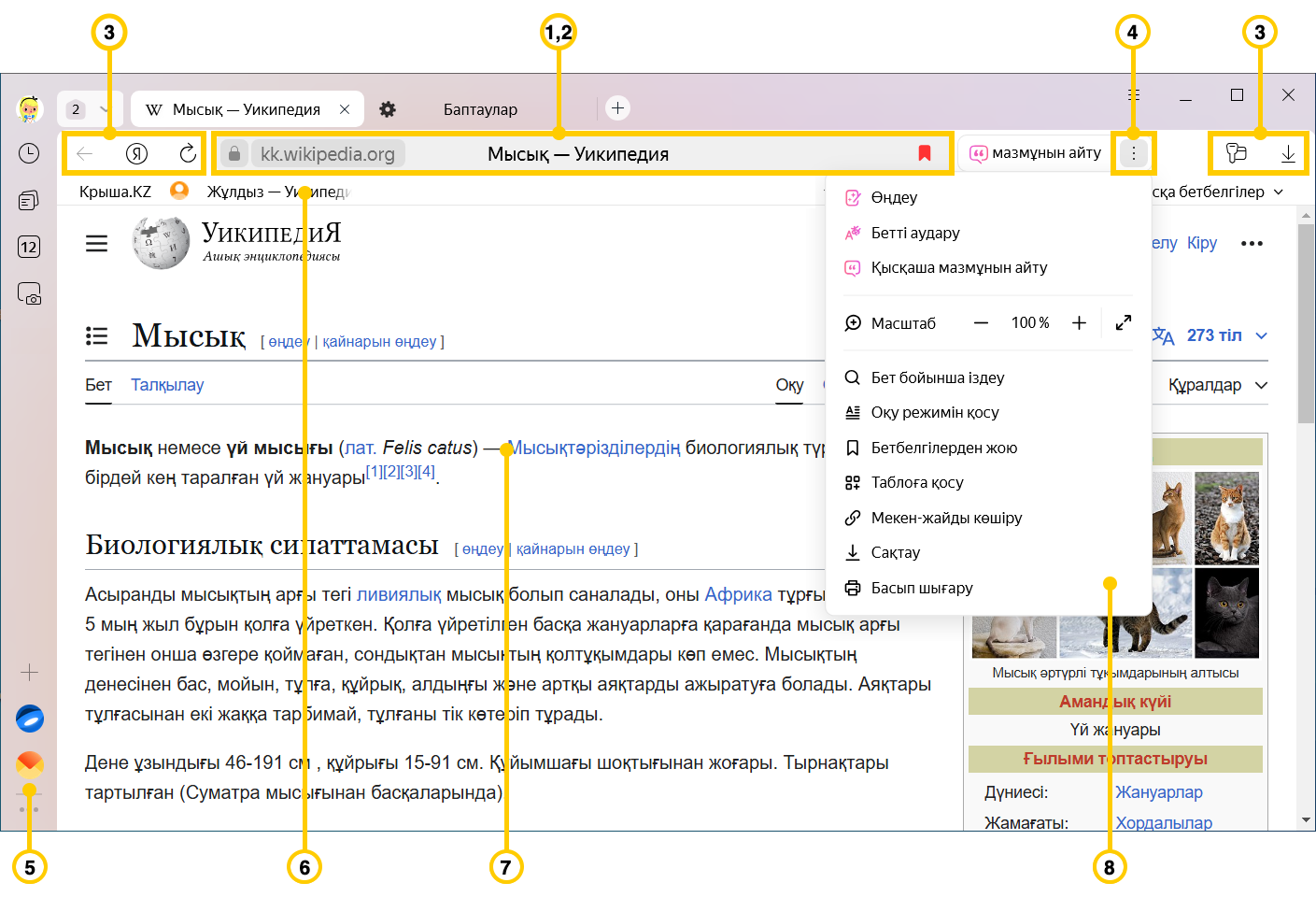 Браузер тақталары арасында дәйекті түрде ауысу үшін F6 пернесін қолданыңыз. Әрбір панельдегі элементтердің арасында ауысып отыру үшін Tab (алға жылжыту) немесе Shift + Tab (артқа жылжыту) пернелерін қолданыңыз.