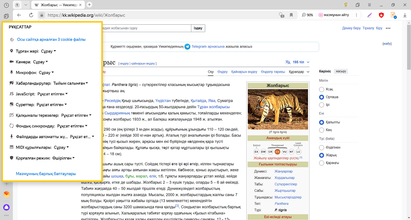 Егер сіз барлық cookie файлдарын жойсаңыз, барлық сайттардағы аккаунттардан автоматты түрде шығасыз және себеттегі тауарлар жоғалып, геолокация дұрыс болмауы мүмкін.