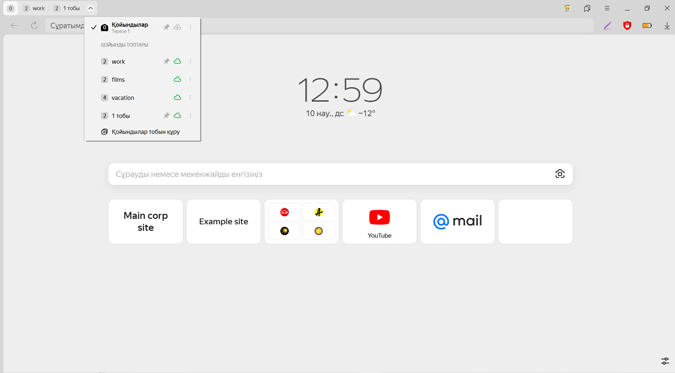 Құрылғыларды Яндекс ID-мен синхрондағаннан кейін, басқа құрылғыларда ашылған топтар мен қойындыларды (олар бұлтта сақталған болса) көре аласыз. Бұл мүмкіндік келесі жағдайларда пайдалы: