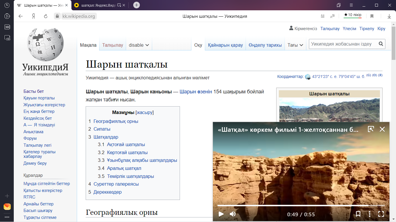 Бейнені Браузердің дербес терезесінде тамашалай аласыз. Мысалы, бағдарламаны және оның видео нұсқауын бір уақытта іске қосуға болады. Видеоплеері бар терезе сіз қандай бағдарламада жұмыс істесеңіз де барлық қалған терезелердің үстінен көрсетіледі. Сіз терезені экранның кез келген жеріне апара аласыз немесе оның өлшемін өзгерте аласыз. Егер Браузерді жасыратын болсаңыз, бейне ойнатылуын жалғастыра береді. Егер HTML5 форматындағы бейнеде субтитрлер болса (мысалы, YouTube арқылы көрсетілетін осындай бейнелерде басқару панелінде  белгішесі бар), олар да жаңа терезеден ашылады.