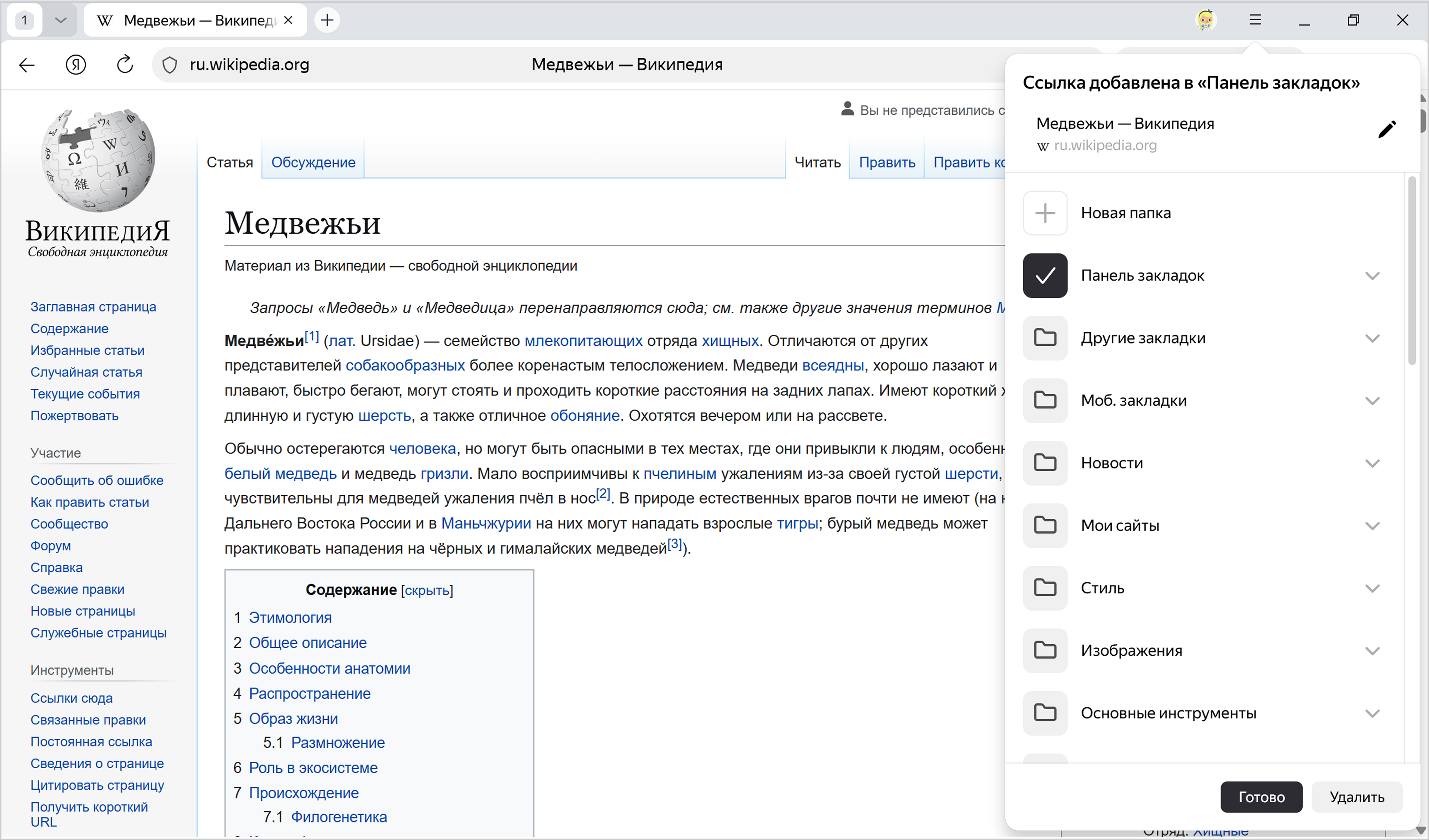 По умолчанию закладка сохраняется в ту же папку, что и предыдущая. Если хотите сохранить ее в другую папку, нажмите Новая папка или выберите папку в списке ниже.