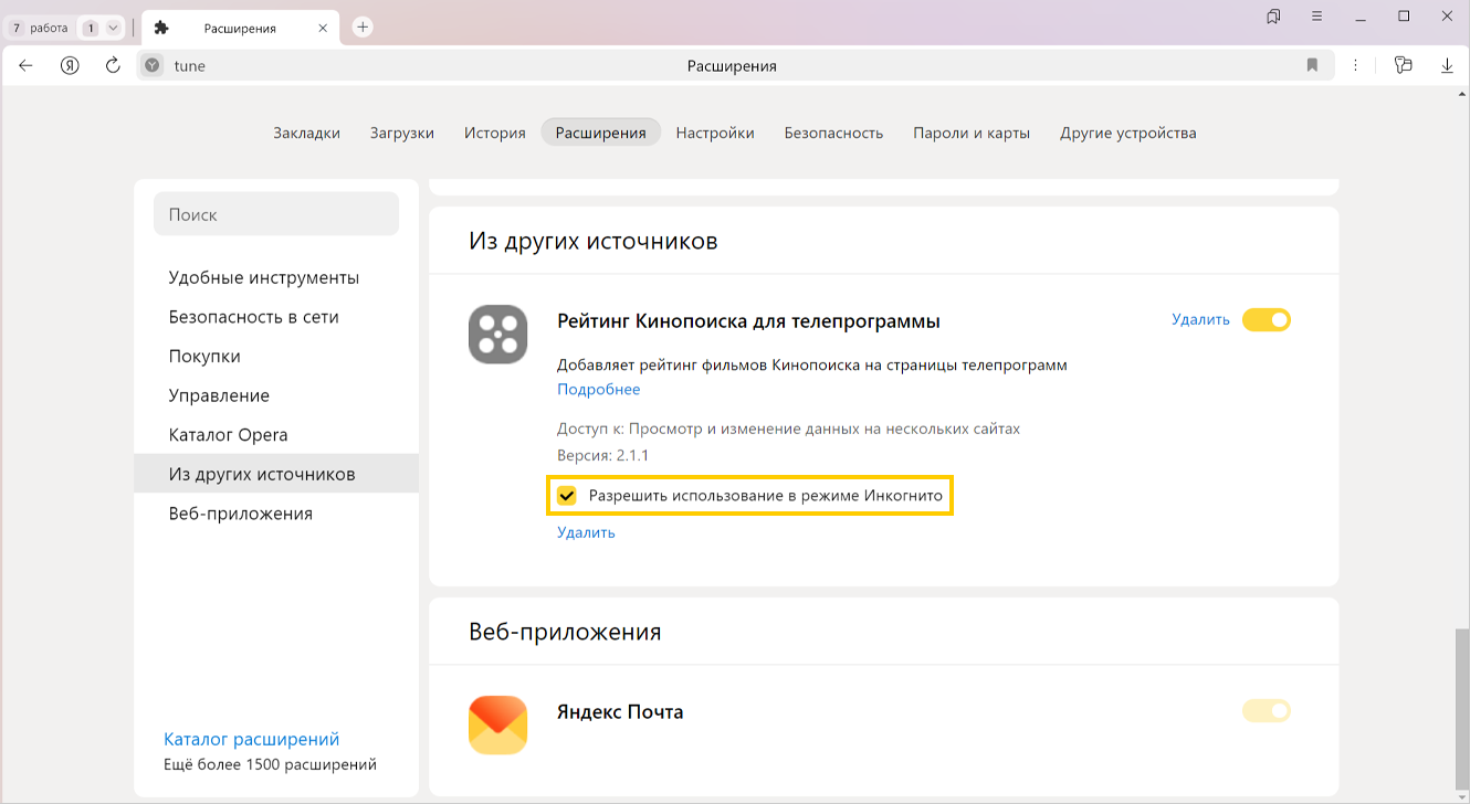По умолчанию в режиме Инкогнито расширения отключены. Некоторые из них можно включить вручную. Чтобы включить расширение: