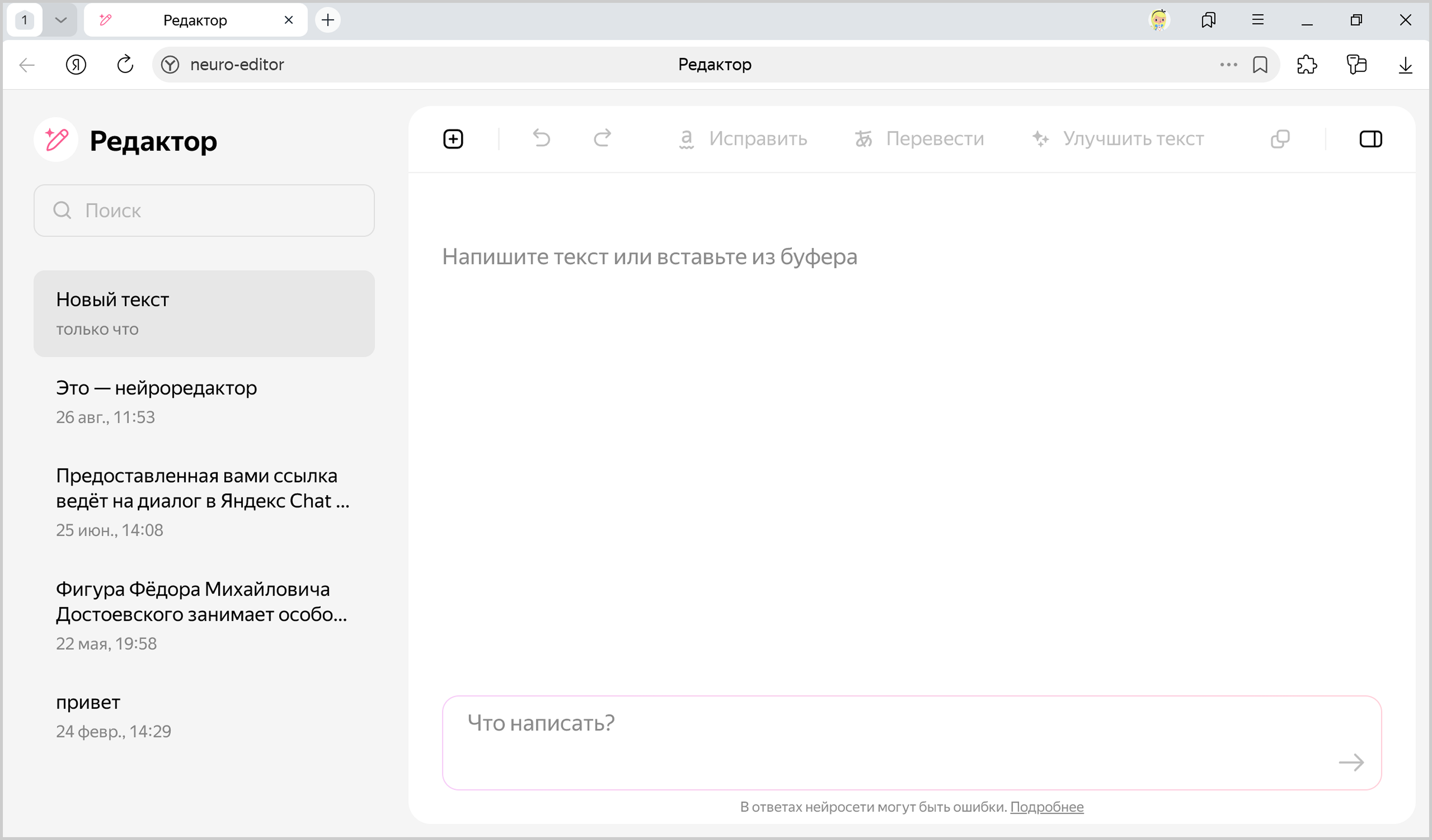 В редакторе можно попросить создать новый текст или внести изменения в уже существующий. Для этого: