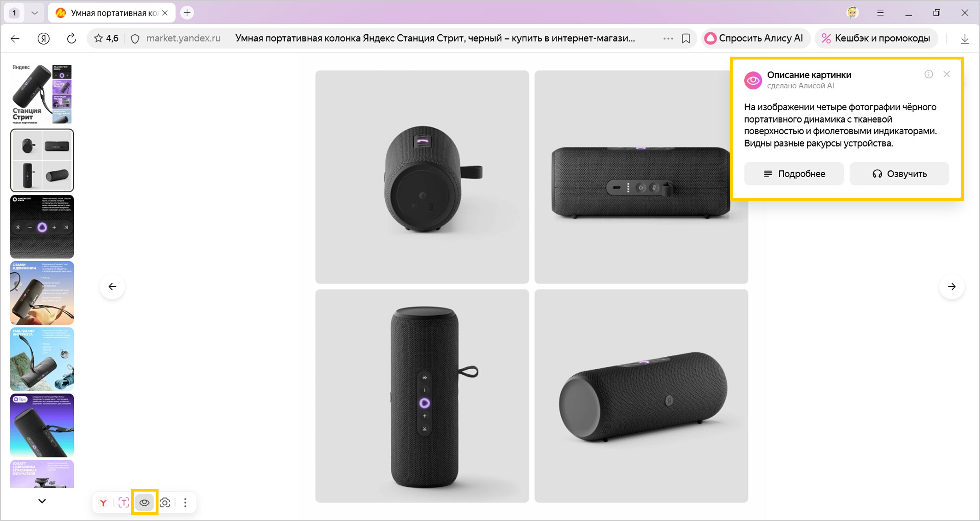 Если вы используете программу экранного доступа, Алиса AI создаст для нее описания картинок.