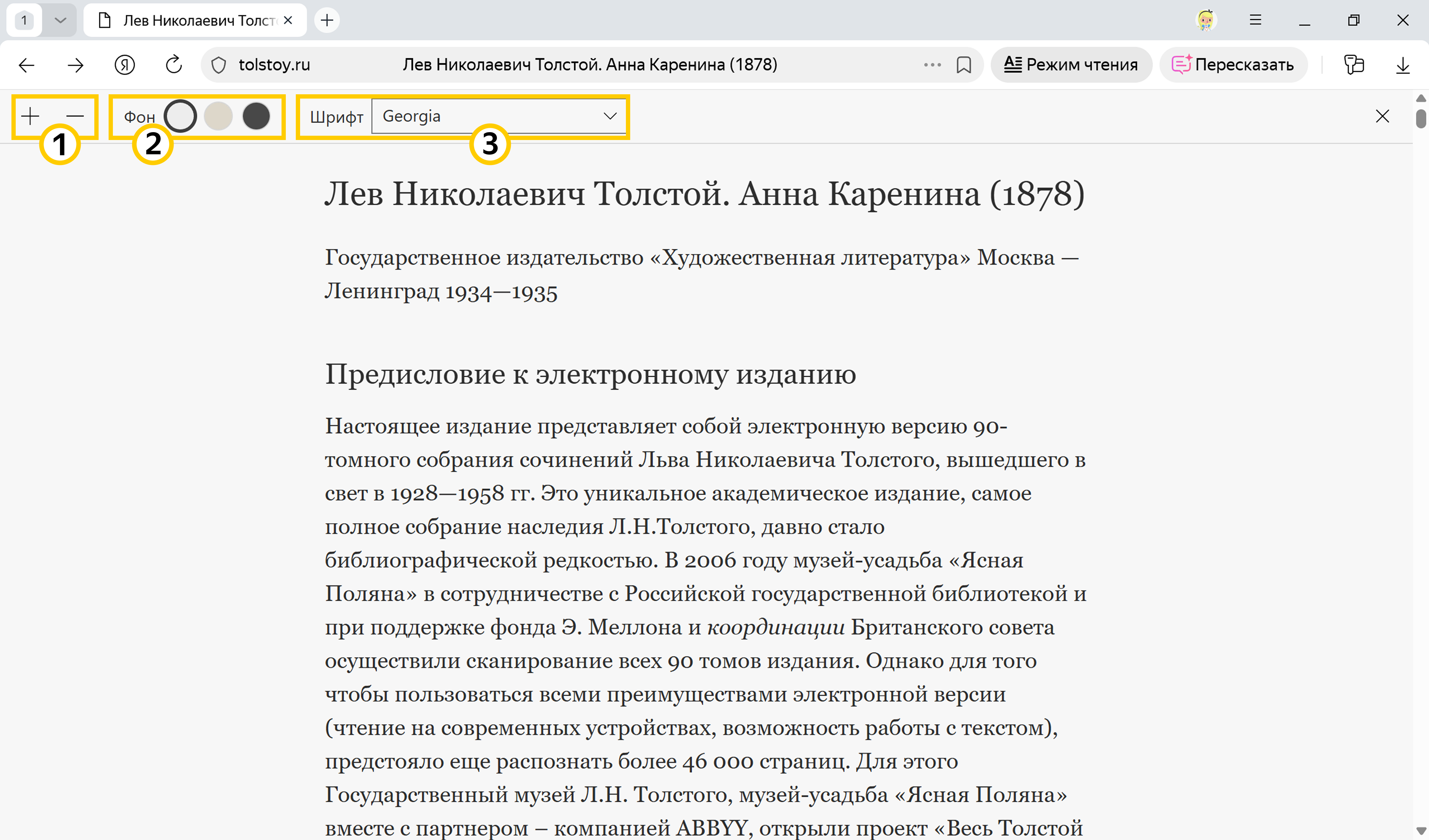 Чтобы освободить немного места для текста, можно убрать с экрана верхнюю панель Яндекс Браузера. Для этого перейдите в полноэкранный режим, нажав F11. Для выхода из полноэкранного режима повторно нажмите F11.