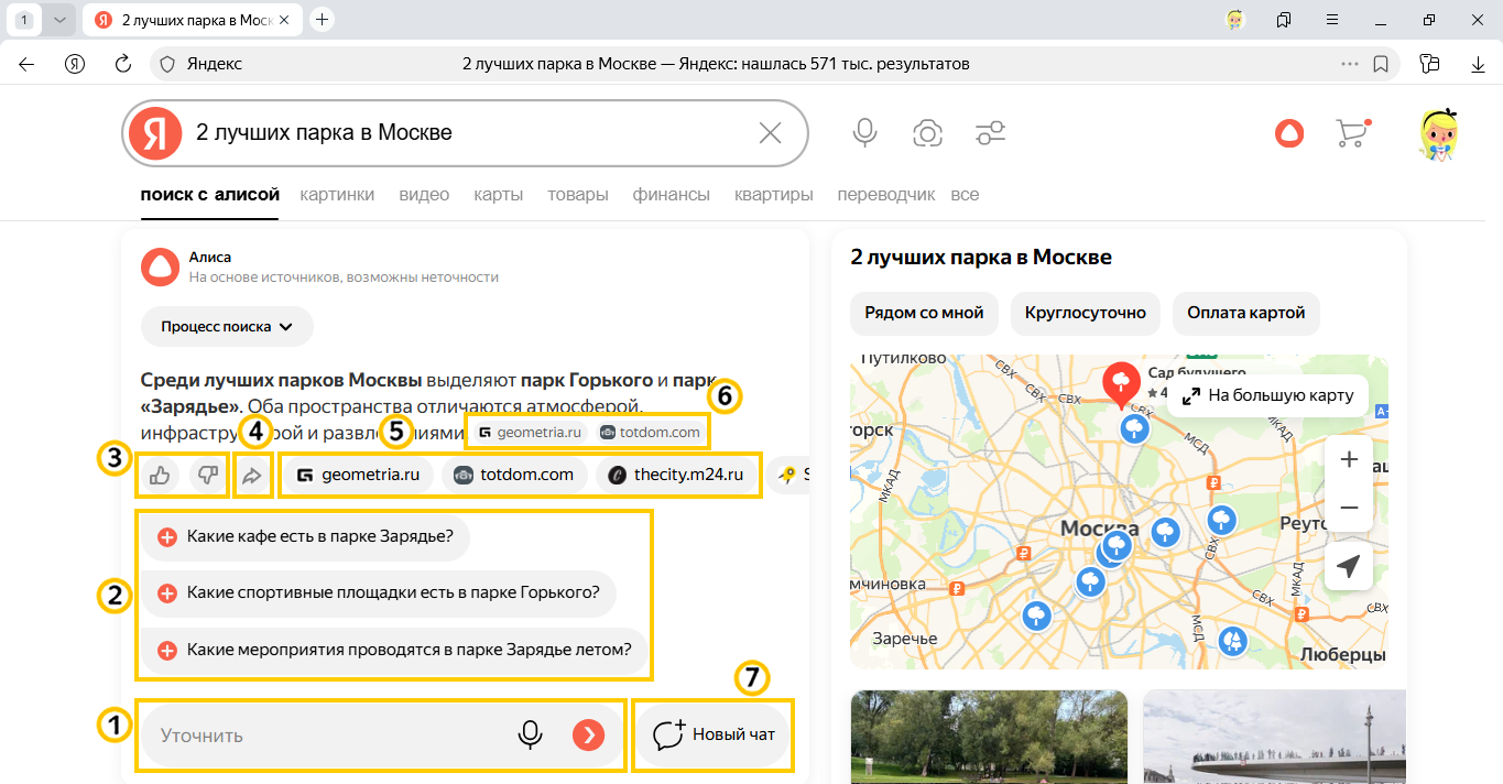 Поиск с Алисой дает ответы на сложные вопросы пользователей. Нейросети формируют структурированные, подробные и подтвержденные источниками ответы с иллюстрациями и видео.