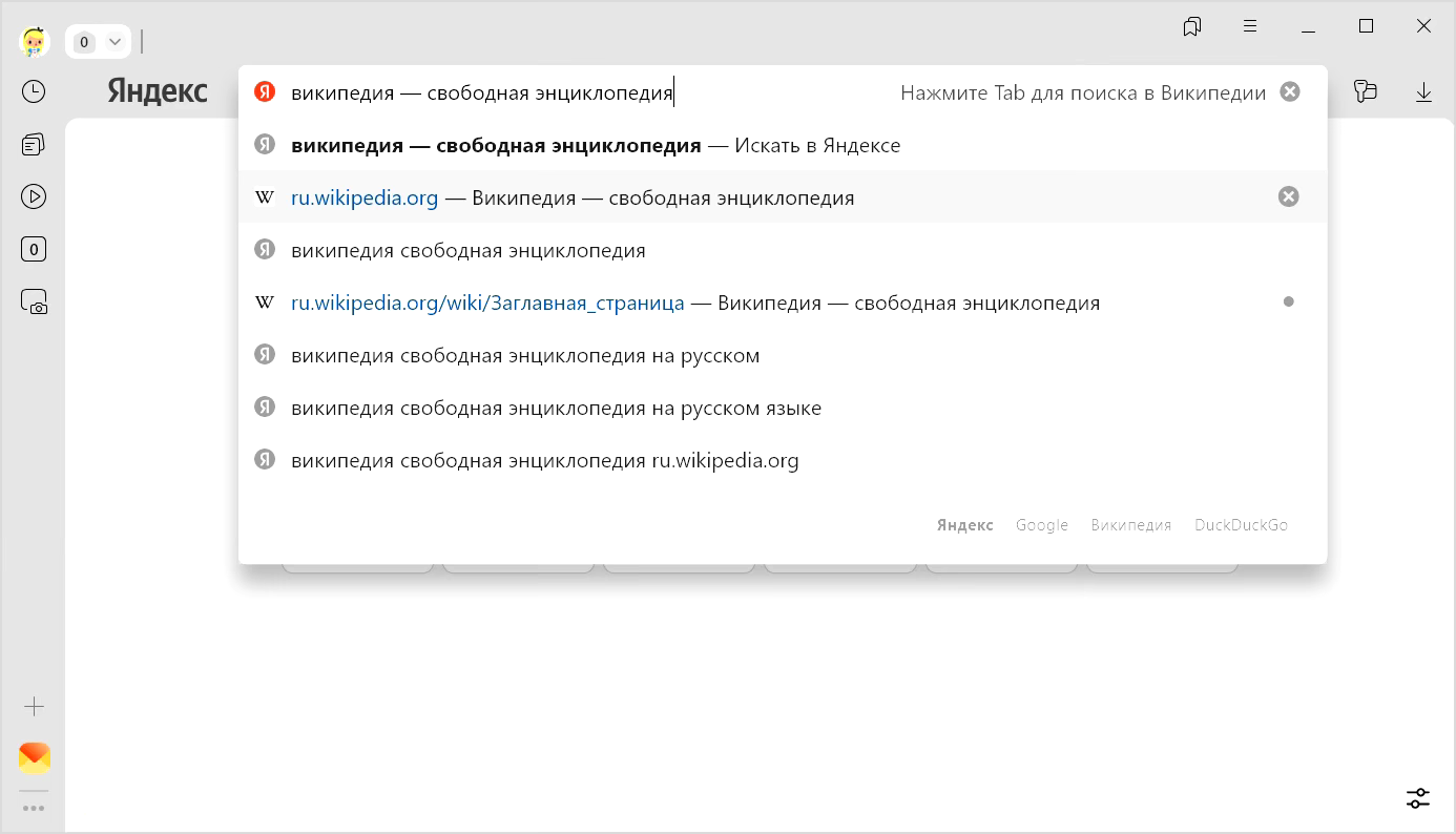 Чтобы выйти из OpenSearch, в Умной строке справа нажмите .