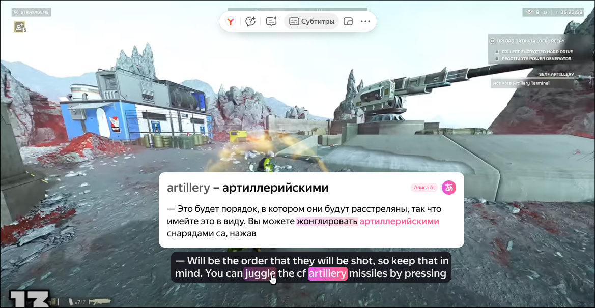 Браузер умеет переводить видео в прямом эфире (стримы, прямые трансляции). На YouTube-каналах вы можете смотреть трансляции на русском языке в режиме реального времени.