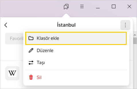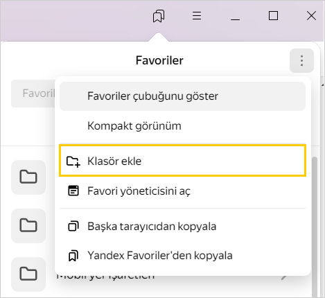 Favoriler ögesinin sağındaki  → Klasör ekle ögesine tıklayın.