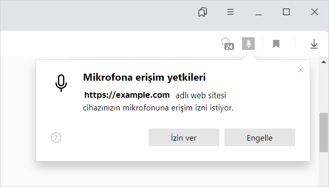 simgesi görüntülenir. Mikrofona erişim yasağı, ilgili site için her zaman geçerli olacaktır. Mikrofona otomatik erişim bir HTTPS sitesi için her zaman etkindir; HTTP sitesi içinse tek oturum için etkin kalır.