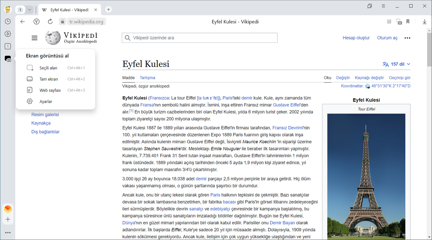 Web sayfası: Sitedeki sayfanın tamamının ekran görüntüsünü almak için.