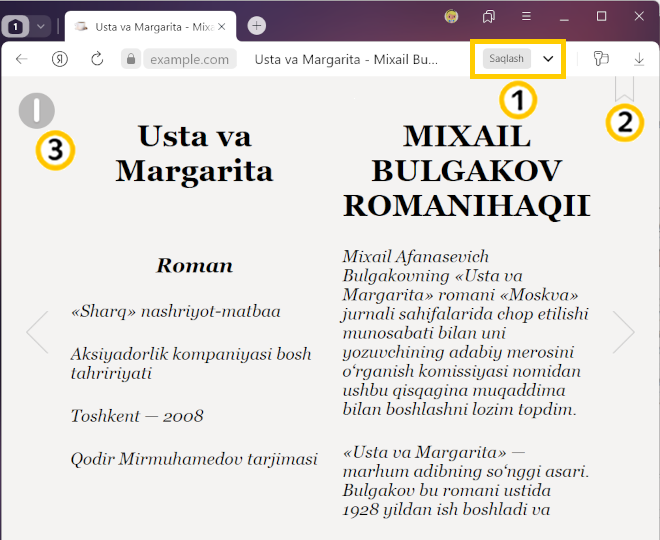 2 — bukmark yaratish;